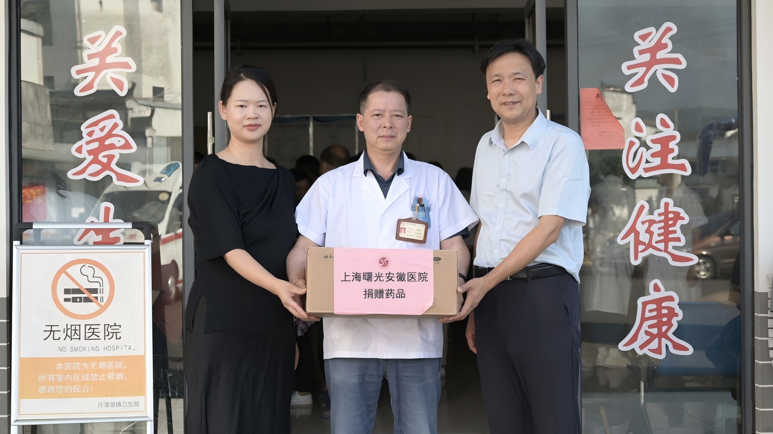 (圖為上海曙光安徽醫院向休寧縣陳霞衛生院捐贈藥品)
