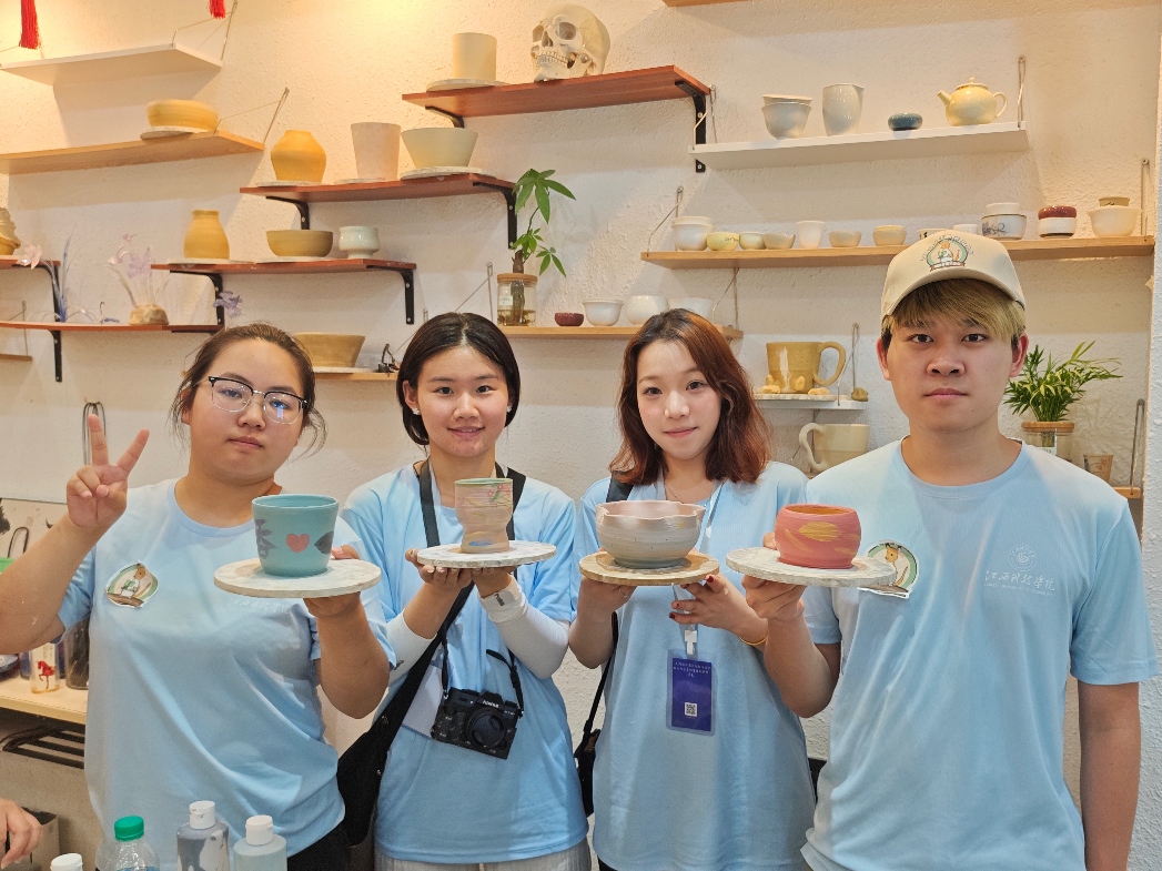 成員們的陶瓷文化初體驗,發生在充滿探索意味的工作室內。短期的技藝實踐讓這份初體驗成為他們調研工作的有力支撐,那沾滿瓷粉的雙手,不僅初步掌握了塑形調釉的方法,更深切體會到毫厘之差決定成敗的工匠精神,以及“化土為器”背后的艱辛與智慧。