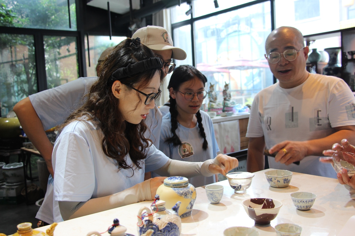 器物無語,卻能對話。羅國新大師提到自己接觸這門技藝,是對古陶瓷碎片別樣的情感——‘每片瓷器都是我的老師’。他以虔誠之心對待每一片瓷片,用雙手讓殘缺的器物得以復原,這讓隊 員們深刻感受到修復不僅是技藝,更是對“留住瓷都的根與魂”的最好詮釋。
