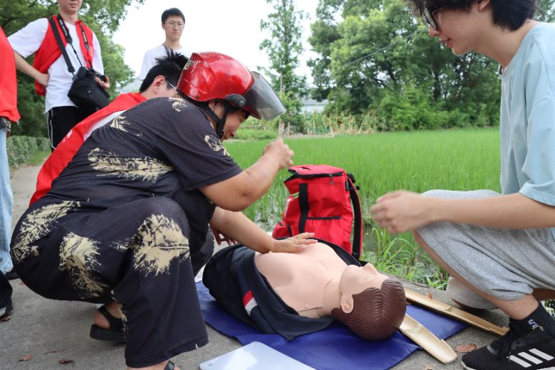 同學(xué)們走進(jìn)了村子,踏著鄉(xiāng)間悠悠的田埂,深入到村子里開展科普活動(dòng)。他們不僅走進(jìn)了村民的家中,耐心地為大家進(jìn)行培訓(xùn),還來到了耕作中的農(nóng)田邊,給那些剛忙完農(nóng)活的老人們送上知識(shí)。就連村里的小朋友們也被吸引過來,學(xué)了些急救小技巧。