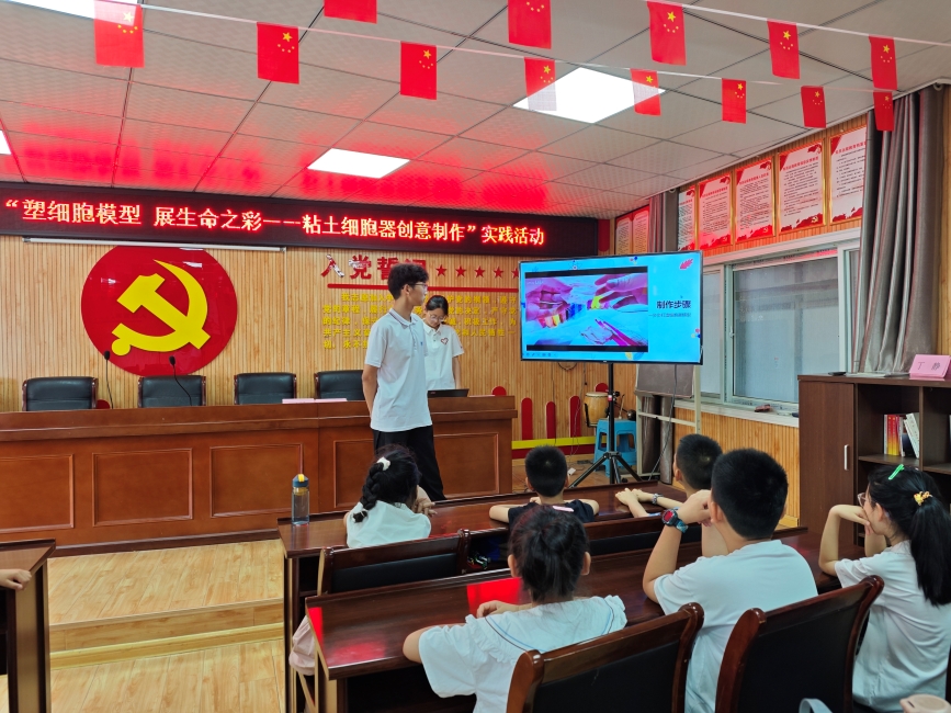 為讓抽象的微觀結構落地生根,團隊接著播放捏制分解影像:從揉圓作細胞核的溫潤,到搓條為內質網的蜿蜒,每一步都如拆解自然的密碼。隨后,彩色粘土在指尖流轉,成員們手把手引導,借掌心揉捏的觸感、眼前模型的形態,讓顯微鏡下的抽象輪廓化為可觸可感的具象,讓微觀生物世界的奧秘,在指尖與眼眸的共鳴中愈發分明。