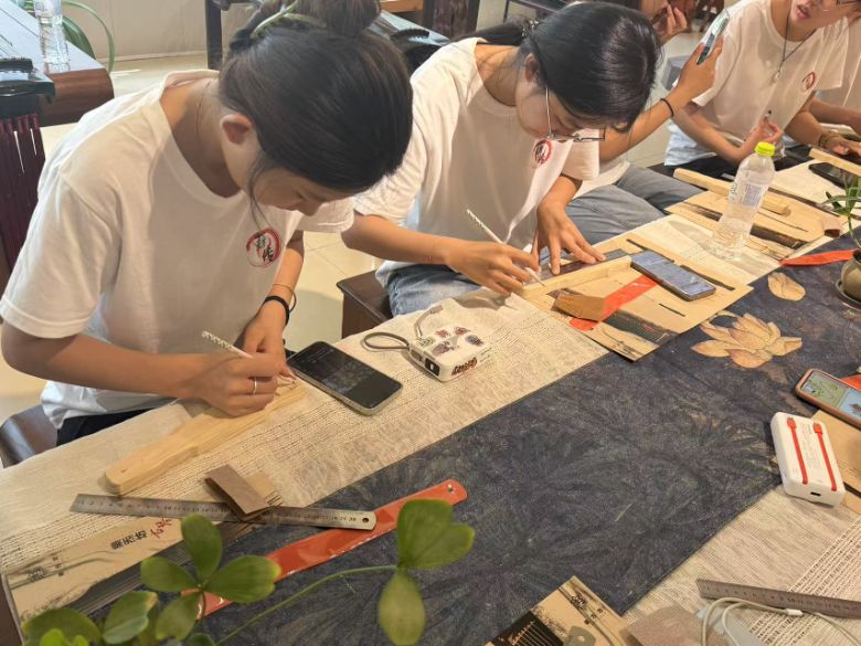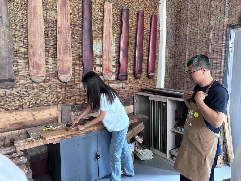 圖為實踐隊隊員體驗古琴制作工藝。邢子涵 供圖