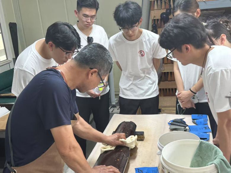 圖為實踐隊隊員參觀古琴制作工坊。閆童威 供圖