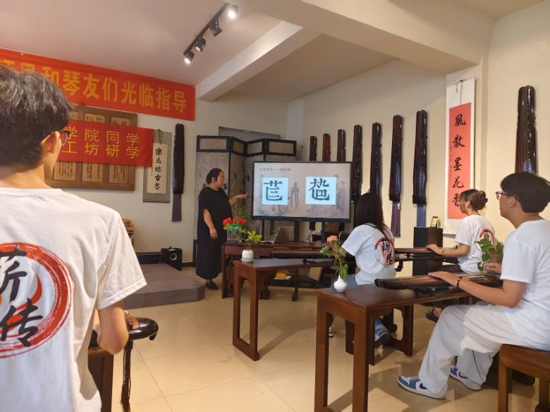 圖為薪傳社會實踐隊在樂炁坊古琴工坊進行掛牌儀式。邢子涵 供圖