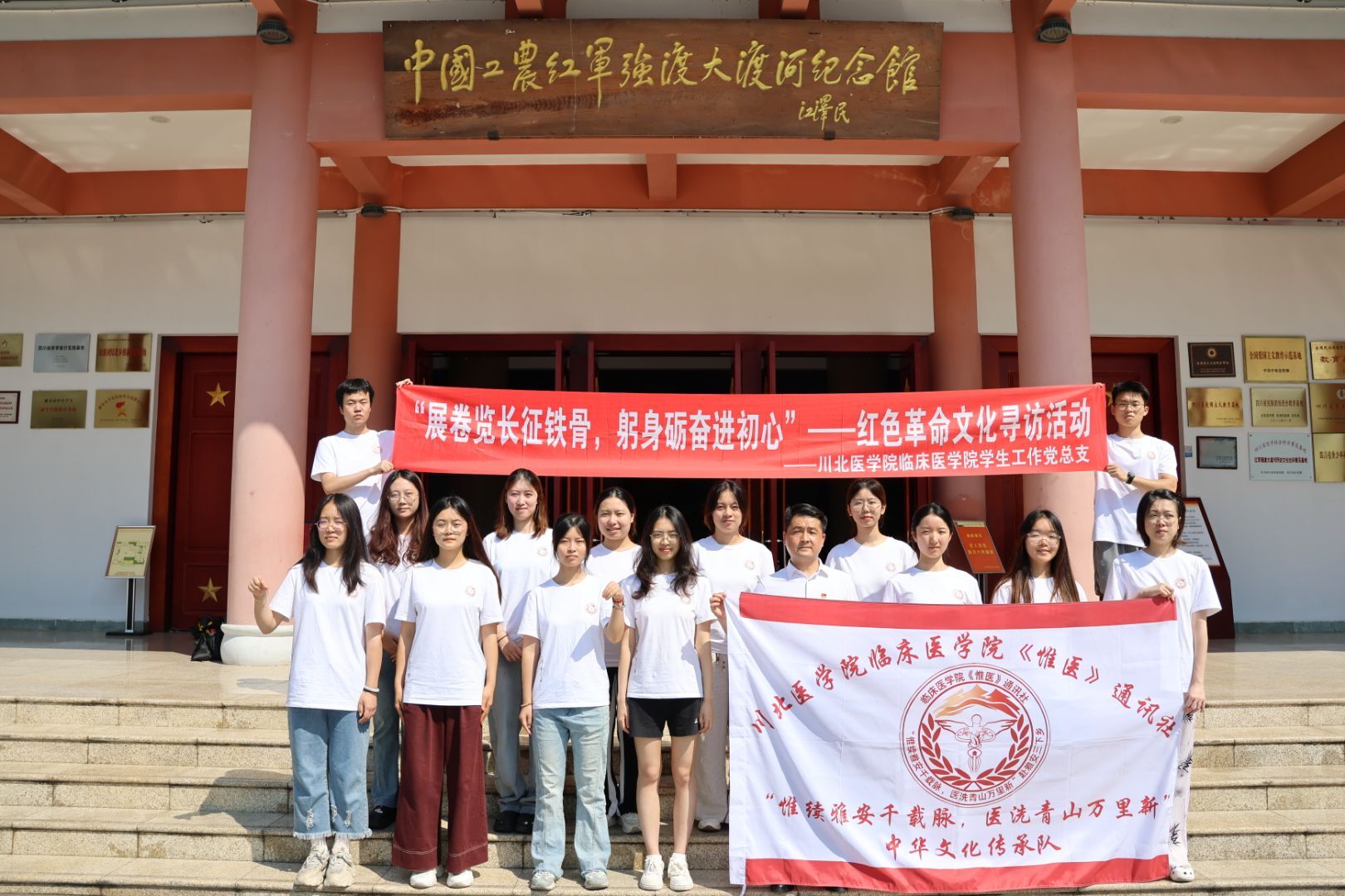 為紀念中國人民抗日戰爭暨世界反法西斯戰爭勝利80周年及中央紅軍長征出發91周年,推動紅色育人與實踐教育有機融合,7月13日上午,川北醫學院赴雅安“惟續雅安千載脈,醫洗青山萬里新”中華文脈傳承團前往雅安市石棉縣中國工農紅軍強渡大渡河紀念館開展“展卷覽長征鐵骨,躬身礪奮進初心”紅色革命文化尋訪活動。隊員們回溯革命先輩強渡天險的壯闊史詩,于新時代紅色文化傳播中,激蕩蓬勃朝氣,涵養鮮活神韻。