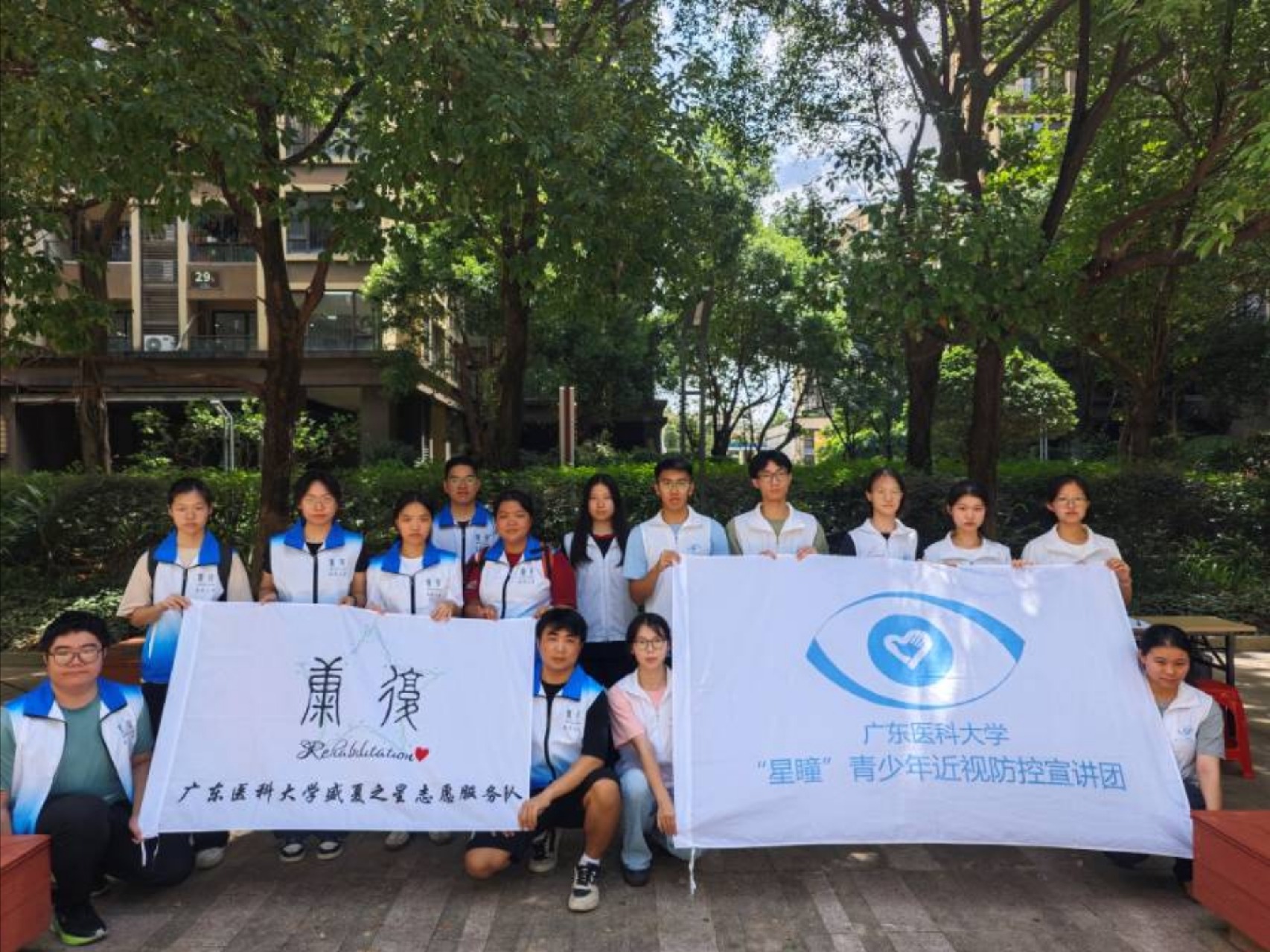 2025年7月13日,廣東醫科大學“星瞳”青少年近視防控宣講團與盛夏之星志愿服務隊攜手走進松山湖北湖片區金域松湖小廣場,通過擺攤宣傳、互動體驗等形式,分別普及近視防控與脊柱側彎知識,以專業服務傳遞健康理念,贏得居民好評。