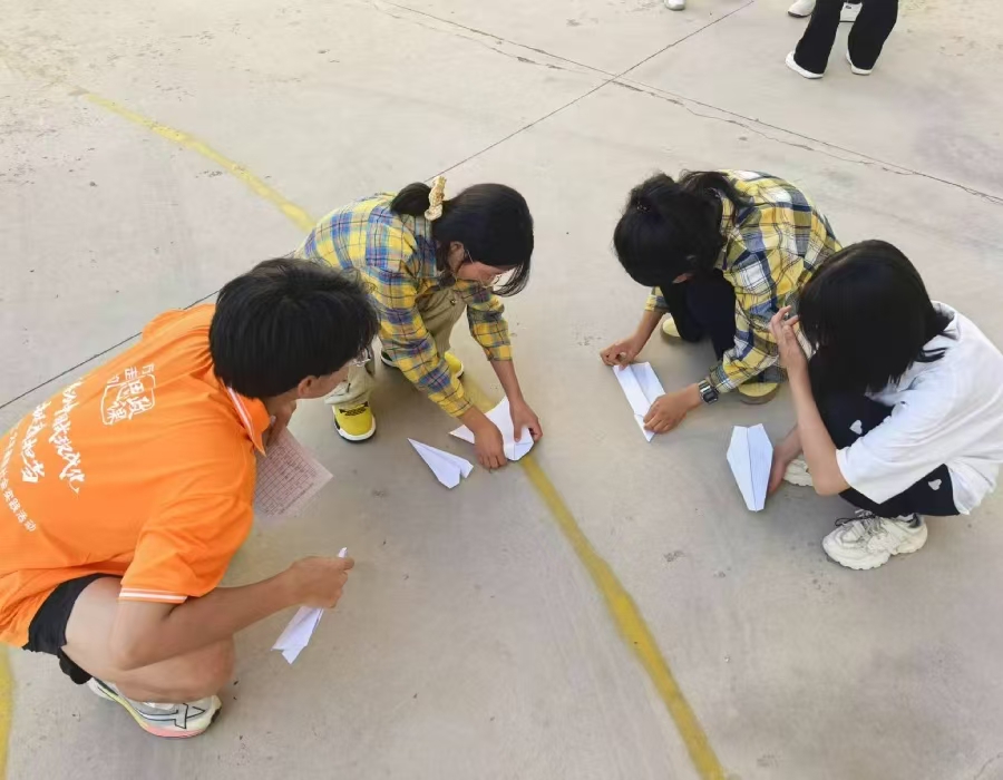 活動延伸至陽光明媚的戶外場地。在“放飛夢想”環節,孩子們在志愿者指導下認真折疊紙飛機,鄭重寫下“想和爸媽視頻通話”、“希望考上大學”等心愿。隨著一聲“放飛夢想啦”,承載著純真心愿的紙飛機紛紛騰空,劃出優美的弧線,孩子們追逐著、歡呼著,校園里洋溢著純粹的童真喜悅。這一刻,騰空而起的不僅是紙飛機,更是孩子們被看見、被呵護的情感表達,實踐隊通過持續性的專業陪伴與引導,正在為留守兒童織就一張溫暖的“心理安全網”。