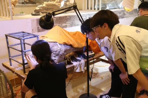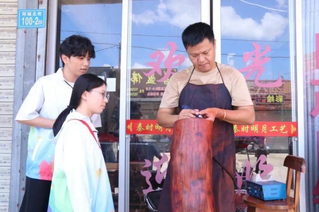 2025年6月27日,實踐隊抵達榜頭鎮工藝品一條街,深入體驗傳統榫卯技藝與手工精修的匠心傳承。他們穿梭于不同風格的作坊,仔細觀察雕刻、打磨等工藝流程,對比傳統工坊與現代工坊的工藝模式差異;通過沉浸式體驗,讓隊員們對傳統工藝制作有了更立體的認識,也為探索非遺技藝的創新發展積累了寶貴的經驗。