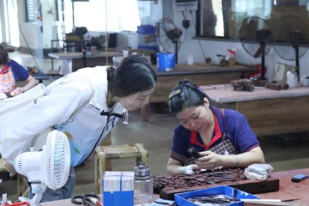 深入生產車間,沉浸式觀摩木雕制作全流程,看著手工匠人將“三分雕七分磨”的傳統工藝精髓發揮得淋漓盡致。這種“古今對話”的生產場景,生動展現了“工匠精神”在當代的傳承與創新,讓隊員們對傳統工藝的現代化轉型有了更深刻的認識。