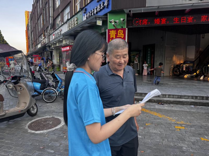 圖為調(diào)研團(tuán)赴湯卞社區(qū)宣傳智匯農(nóng)業(yè)知識 陳一諾攝