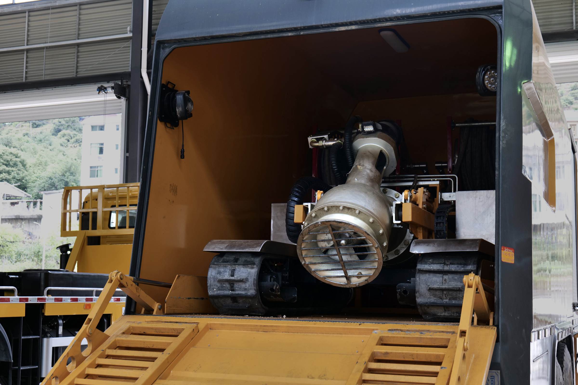 基地規模宏大,設備先進。應急人員介紹道:“我們現在是省級基地,但是我們正在申請國家級,未來的規模將會擴大至二到三倍。”除雪撒鹽車、裝載機、應急照明車等大型設備矗立在眼前,它們曾在多次搶險救援中立下赫赫戰功。在裝備展示區,一輛橙紅色的“龍吸水”大流量排水車(俗稱“龍吸水”)成為全場焦點。應急人員介紹,這臺“移動泵站”每小時最大排水量可達3000立方米,造價300多萬,被群眾稱為“救急龍王”。這些設備不僅彰顯了科技的力量,更體現了應急人員日夜堅守、無私奉獻的精神。