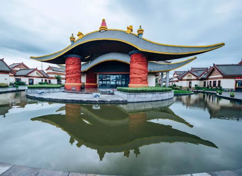 位于淮安市的實踐團成員們參觀了當地的堯想國文化旅游區。該景區以二十四節氣廣場為核心載體,通過建筑群展現農耕文明起源。進入景區,映入眼簾的是高大威猛的堯帝像,堯帝像高達數十米,屹立在廣場中央,目光深邃的凝視著遠方,讓人心生敬畏。沿著石板路前行,來到堯文化展示館,展示館內通過豐富的文物,圖片,文字以及多媒體展示手段介紹了堯帝的生平事跡。講解員詳細講述了堯帝“禪讓”“治水”“制歷”等傳說故事,以及堯文化中“仁愛”“勤政”“民本”的核心精神,讓參與者們對這位上古賢君的豐功偉績有了更清晰的認識。除了靜態的參觀,景區豐富的互動體驗項目更是讓大家興致盎然。在堯文化體驗區,參與者們嘗試了古法釀酒、陶器制作等傳統技藝,親手感受上古時期的生產生活方式。在復原的堯帝宮殿場景中,隊員們體驗了一場別開生面的“模擬祭典”,切身感受古代禮儀文化的莊重與神圣。此次堯想國文化旅游區參觀活動,不僅讓隊員們近距離觸摸到了遠古文明的脈搏,更在輕松愉悅的氛圍中深化了對堯文化的理解,讓大家在潛移默化中傳承和弘揚了中華優秀傳統文化。