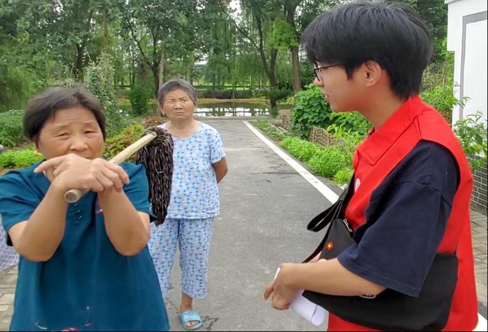 圖為團隊成員采訪當地種植戶李桂蘭。王芳 供圖