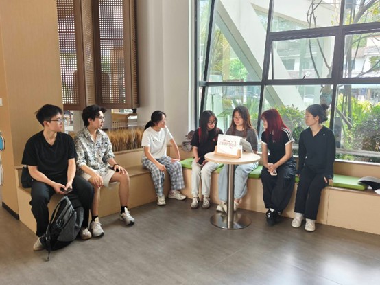 圖二:同學(xué)們在圖書角討論學(xué)習,激烈討論,碰撞思維的火花