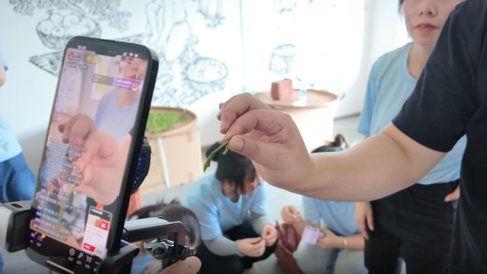 圖為團隊成員在茶園進行直播。黃澤同供圖