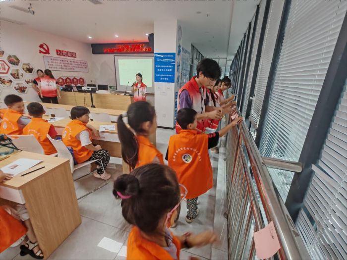 圖4小朋友們和志愿者一起粘貼心靈便簽 黃靖攝