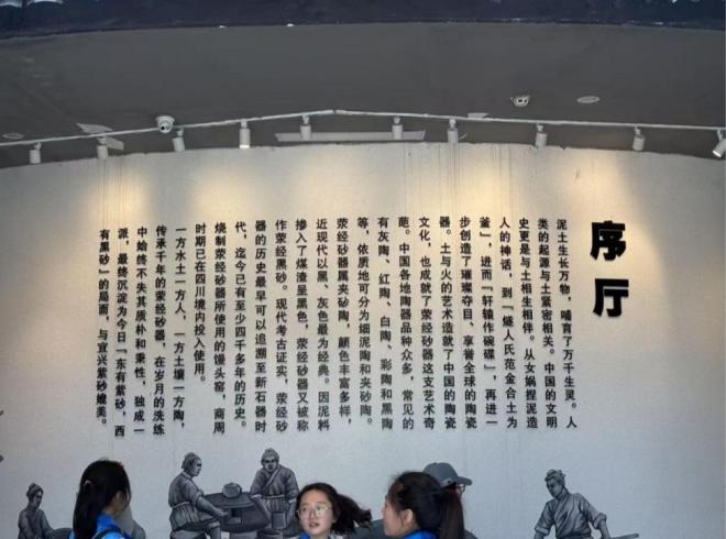 實(shí)踐隊(duì)伍在見證了制胚工序的繁雜之后來到了黑砂博物館,首先映入眼簾的是序廳,展示著黑砂的悠久歷史,往里走,展墻上的文字記錄著黑砂從古到今發(fā)展的歷程,上古先民,怎樣摶土成器,怎樣成為如今的非遺黑砂。每一個(gè)字都承載著深厚的歷史底蘊(yùn)。繼續(xù)前行,就是玲瑯滿目的砂制模型,讓實(shí)踐隊(duì)伍的成員們能夠切實(shí)感受到古人的生活環(huán)境與黑砂的緊密聯(lián)系,深刻體會(huì)到黑砂文化在促進(jìn)經(jīng)濟(jì)文化交流中的作用。