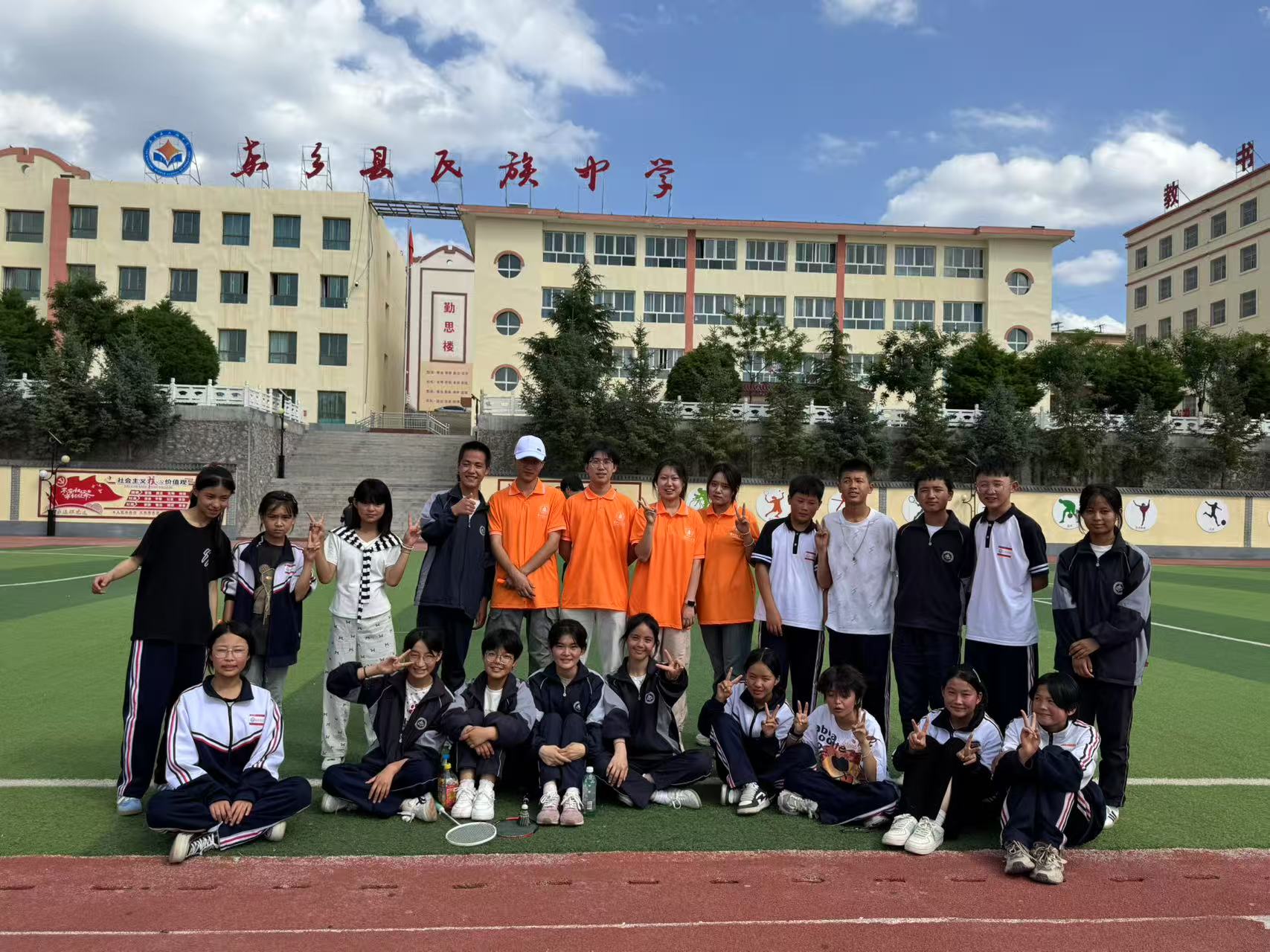 宣講會結束后,實踐隊還與同學們開展了一系列體育鍛煉活動。羽毛球場上,志愿者與學生們組成混合戰隊,展開激烈角逐,汗水浸濕了衣衫,卻擋不住大家的熱情;跳繩比賽中,孩子們輕盈的身影在繩子間穿梭,歡呼聲、加油聲此起彼伏。“平時學習壓力大,很少有機會這么痛快地玩一場,和大哥哥大姐姐們一起運動,感覺特別開心。”八年級學生馬明山說。體育活動的開展,不僅增強了孩子們的體質,更在汗水中澆灌出團結與自信的種子。
