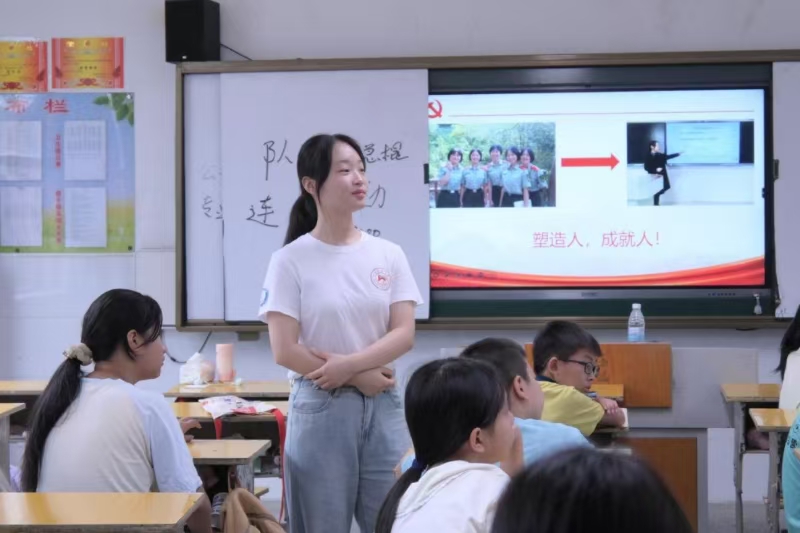 (通訊員 許海微 彭璟怡 曾婷)7月14日上午,為培養學生的愛國熱忱與使命意識,湖南師范大學樹達學院教師教育系“燃情盛夏”隊在良田學校開展“從軍徽到隊徽,做黨的紅孩子”紅色論壇活動。支教組成員彭晶晶擔任主講人。