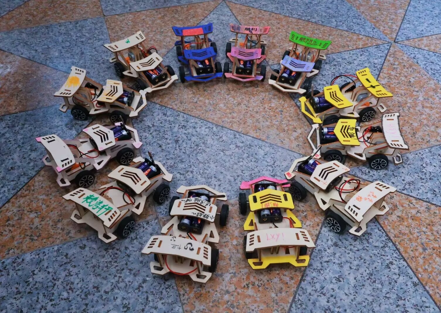 在“DIY電動賽車”、“手搖發電體驗”實驗中,孩子們在志愿者的指導下,動手拼裝電池驅動的賽車和簡易手搖發電機,親歷電能與動能相互轉化的神奇過程;;在“茶水變墨水”實驗中,通過草酸與三氯化鐵的氧化還原反應,引導孩子們理解茶水瞬間變黑的“魔術”奧妙;在“水火箭發射”實驗中,利用塑料瓶、PVC管組裝并成功發射水火箭,感受物理學奧秘。