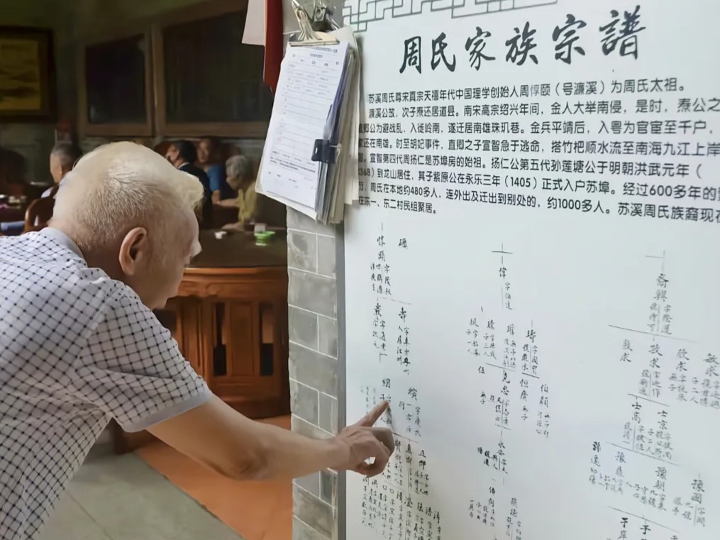 盡管已近九旬高齡,周兆弼依然精神矍鑠,活躍于當(dāng)?shù)馗黝愇幕顒?dòng)中。在德善文化研學(xué)活動(dòng)現(xiàn)場(chǎng),他常以一頭白發(fā)的老者形象,向年輕一輩詳解家族歷史與文化內(nèi)涵。“我們周氏講究‘暇觀’‘直舉’,就是要登高望遠(yuǎn),培養(yǎng)棟梁之材。”他認(rèn)真授課的身影,成為蘇溪周氏文化傳承的生動(dòng)注腳,也讓更多年輕人感受到傳統(tǒng)文化的魅力。