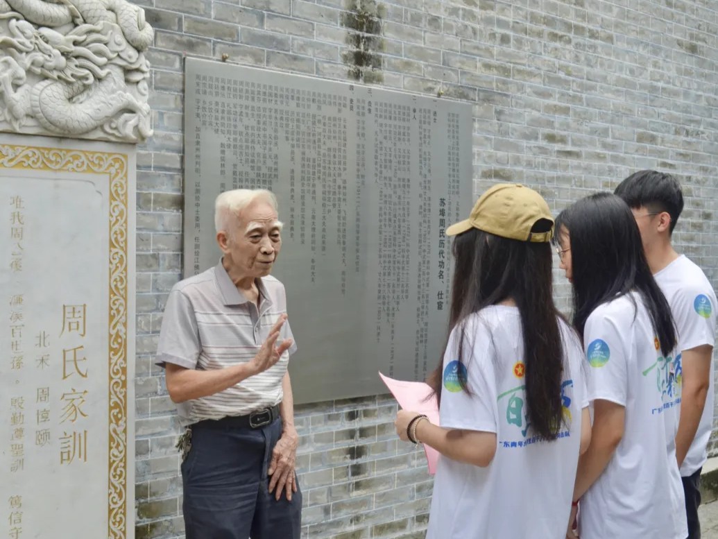 圖為周先生向突擊隊(duì)成員講解周氏家訓(xùn)以及《愛(ài)蓮說(shuō)》內(nèi)涵