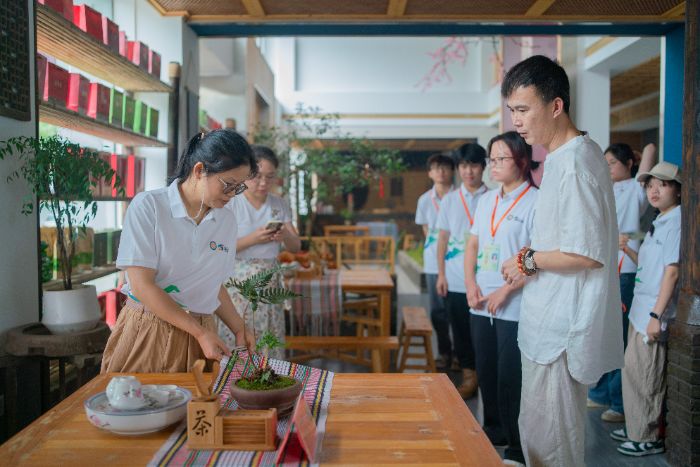 為進一步貫徹落實廣東省關于“百千萬工程”的決策部署,切實提升青年大學生實地調查研究能力,激發參與基層改革創新探索的熱情。2025年7月13日,廣東農工商職業技術學院藝術與設計學院“橫水鐫藝,美繪鄉韻”百千萬工程突擊隊一行12人走進河源市連平縣茶產業服務中心進行參觀,在一片清香中開啟了關于連平高山茶的深度研學之旅,更意外收獲了與同校隊伍的驚喜相逢。