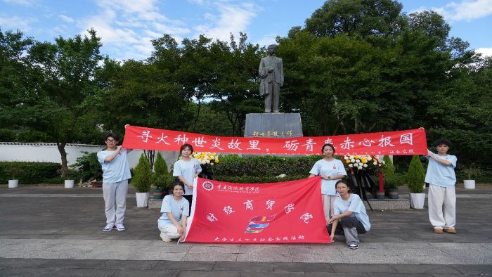 圖為“土苗鄉·紅跡解碼團”成員在趙世炎烈士陳列館前合影。王華靈供圖