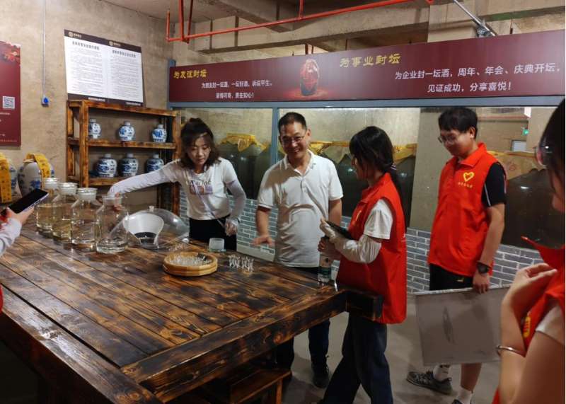 釀造車間里,濃郁酒香撲面而來,喚醒了所有人的感官。實踐團成員不僅了解到秦酒“清蒸清燒四次清”的獨特工藝,更親口品嘗剛出爐的新釀原漿,清澈酒液入口綿柔,回味間盡是傳統技藝的厚重。最令人震撼的是占地8000平方米的地下酒窖,成排陶壇整齊排列,封條上的年份標注著歲月沉淀。品嘗4年陳釀時,醇厚口感與濃郁香氣讓實踐團成員深刻體會到“時間釀好酒”的哲學,更讀懂匠人們“慢工出細活”的堅守。在文化展示區,多媒體互動與實物展品勾勒出秦酒歷史脈絡,從商周酒器到現代配方,實踐團成員在沉浸式體驗中感悟傳統產業的“雙重價值”——既是帶動就業的經濟引擎,更是凝聚鄉愁的文化紐帶。