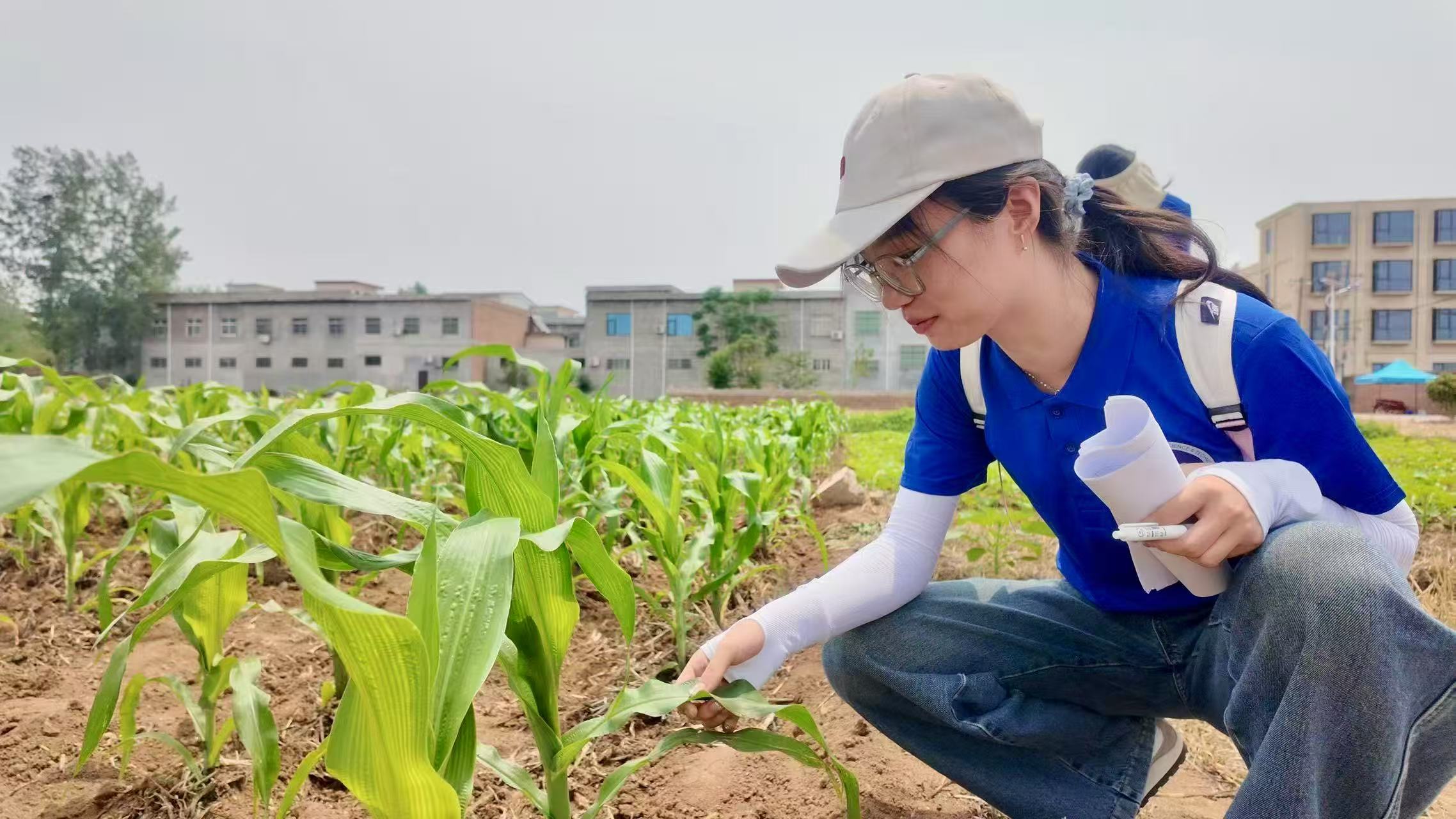三、腳踩泥土調查:田間地頭配出“技術方”在劉溝村、古城村的的玉米地,成員們通過查看土壤根系,指出密度過密、通風透光不夠的問題,并結合理論知識給出了“生物防治+科學施肥”的具體建議。腳下沾著泥,手里握著筆,田野間的每一次觀察,都成了“對癥下藥”的依據。
