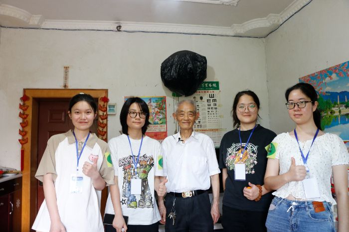 實(shí)踐團(tuán)同學(xué)們與文慶吉爺爺合影攝|劉夢(mèng)鈴