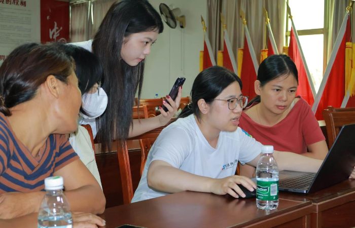 下半場(chǎng)培訓(xùn)則更側(cè)重于直播實(shí)操能力的提升,構(gòu)建“全流程指導(dǎo)+關(guān)鍵環(huán)節(jié)強(qiáng)化”的教學(xué)體系。主講成員詳細(xì)講解了直播的完整流程,從開播前的設(shè)備調(diào)試、腳本準(zhǔn)備,到直播中的話術(shù)技巧——如何介紹產(chǎn)品亮點(diǎn)、如何引導(dǎo)觀眾互動(dòng)、如何促成下單等,都進(jìn)行了手把手的教學(xué)。此外,隊(duì)員們還特別強(qiáng)調(diào)了直播后的“數(shù)據(jù)復(fù)盤”環(huán)節(jié),教導(dǎo)村民們?nèi)绾尾榭从^看人數(shù)、成交數(shù)據(jù)、粉絲增長等關(guān)鍵指標(biāo),通過數(shù)據(jù)對(duì)比分析直播中的優(yōu)勢(shì)與不足,進(jìn)而優(yōu)化后續(xù)直播的內(nèi)容設(shè)計(jì)與運(yùn)營策略,提升直播成效。