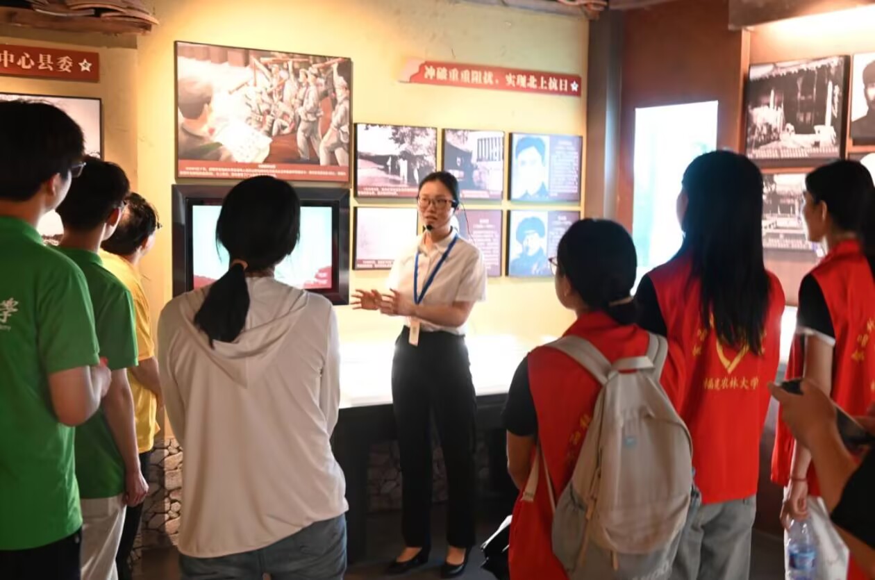 圖為講解員帶領(lǐng)實踐隊師生回顧中國人民十四年艱苦抗戰(zhàn)