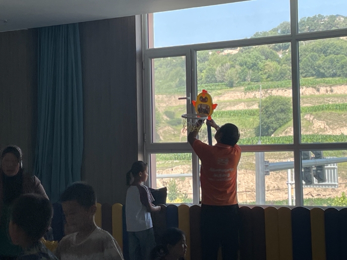 圖為實踐隊員為小朋友們安裝活動器材 李雙辰攝