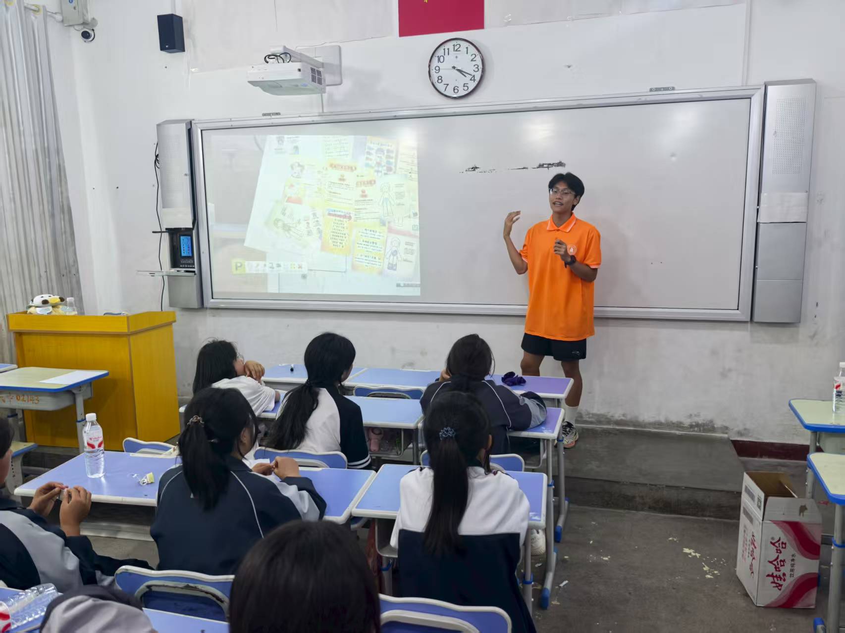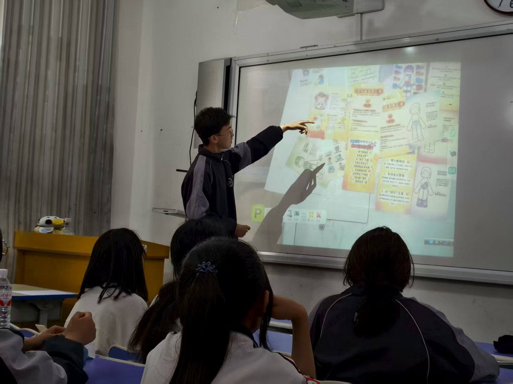 圖為志愿者在和鼓勵東鄉中學的小同學們展示自己(杜騫 攝)
