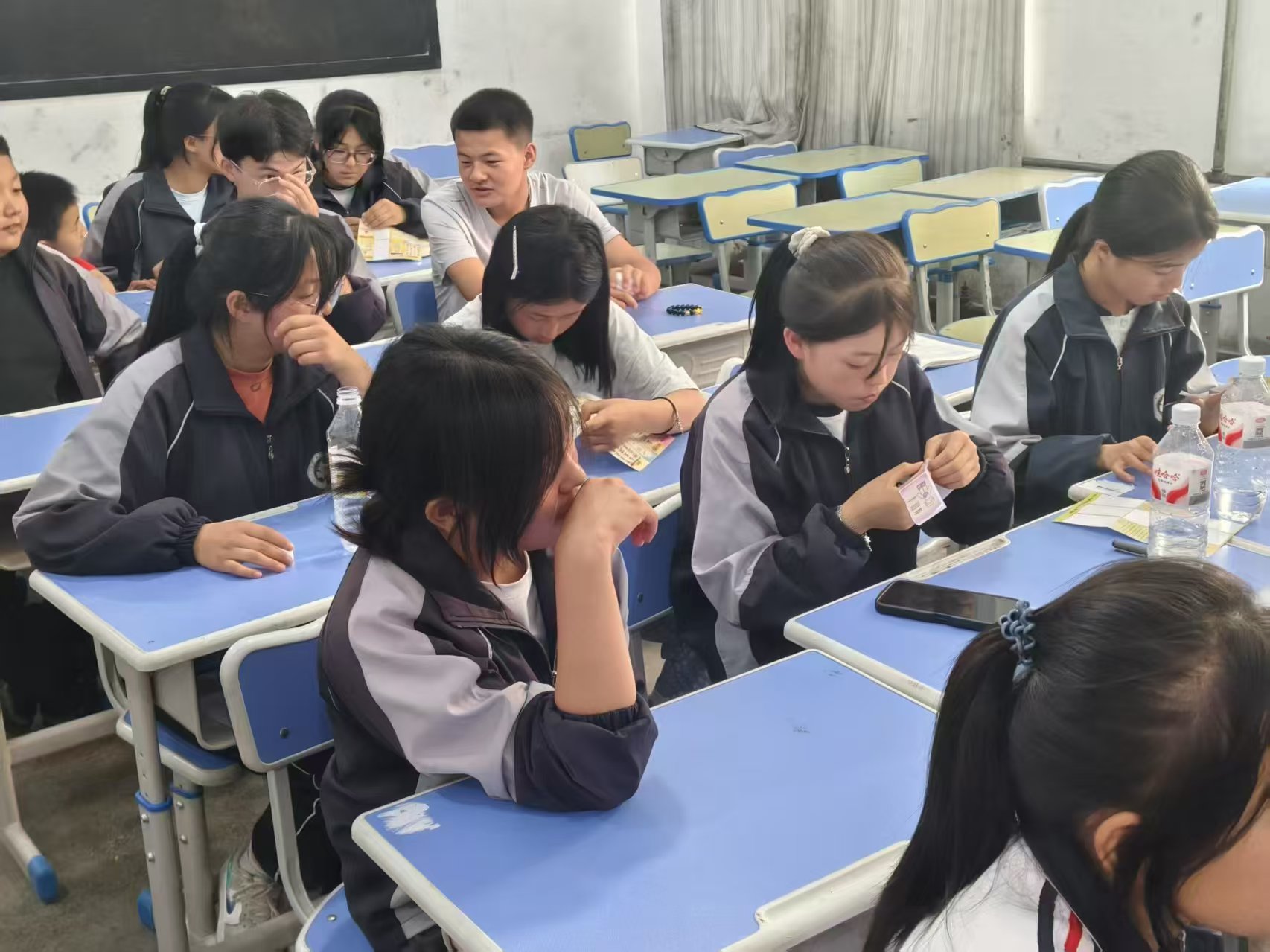 圖為東鄉中學小同學在認真識別“情緒貼紙”(張慶哲 攝)