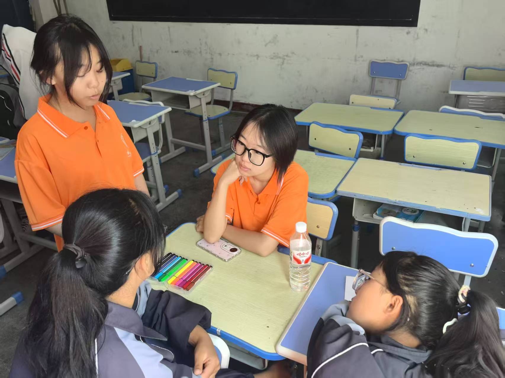 圖為志愿者和東鄉中學小同學在討論未來(杜騫 攝)