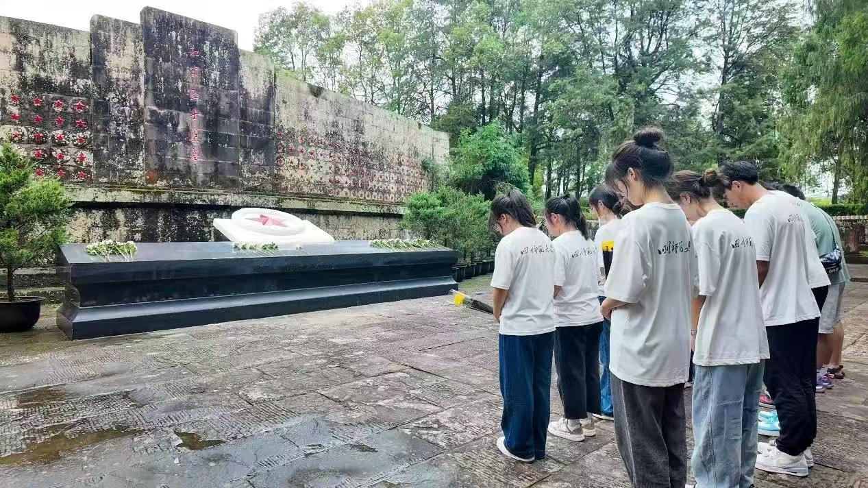 在紅軍烈士集墓前,全體隊員列隊肅立,低頭默哀、敬獻鮮花,用最樸素的方式向長眠的英雄致敬。朵朵白花寄托哀思,聲聲默念傳遞敬意,革命精神在這一刻跨越時空,與青春力量同頻共振。