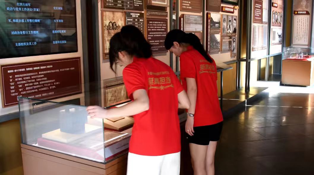 午后,實踐隊轉赴位于通江縣壁州街道文廟街的紅四方面軍總指揮部舊址紀念館。這座四合院古建筑群曾是川陜革命根據地的指揮中樞,石碑、軍旗等珍貴文物靜靜陳列,無聲訴說著紅軍浴血奮戰的崢嶸歲月。隊員們在展柜前駐足細觀,在歷史場景中回溯紅四方面軍的戰斗足跡。在徐向前元帥雕塑前,全體隊員神情肅穆,靜靜瞻仰沉思,先烈們的堅定信念與無畏擔當深深觸動著每一顆青春之心。
