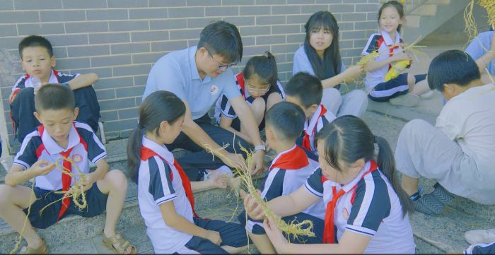 “制作草鞋”課程成為了生動的紅色勞動教育實踐課。實踐團成員以草鞋制作為載體,將革命歷史與勞動技能深度結合,讓學生在編織和協作中感悟革命年代艱苦奮斗精神。學習“一系一搓一挽一編”的草鞋編織技法,枯黃的稻草在手中逐漸變成結實的鞋底。“紅軍戰士穿著這樣的草鞋翻雪山、過草地,每一道裂痕都是信仰的印記。”實成員在教學中講述草鞋背后的革命故事,讓小學生在勞動中觸摸歷史溫度。課程還設置“草鞋承重挑戰”,通過模擬紅軍負重行軍,引導小學生體會“一粥一飯當思來之不易”的歷史深意。