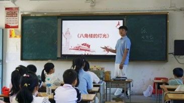 實踐團與井岡山毛澤東紅軍學校的孩子們進行成果展示 葉健偉攝