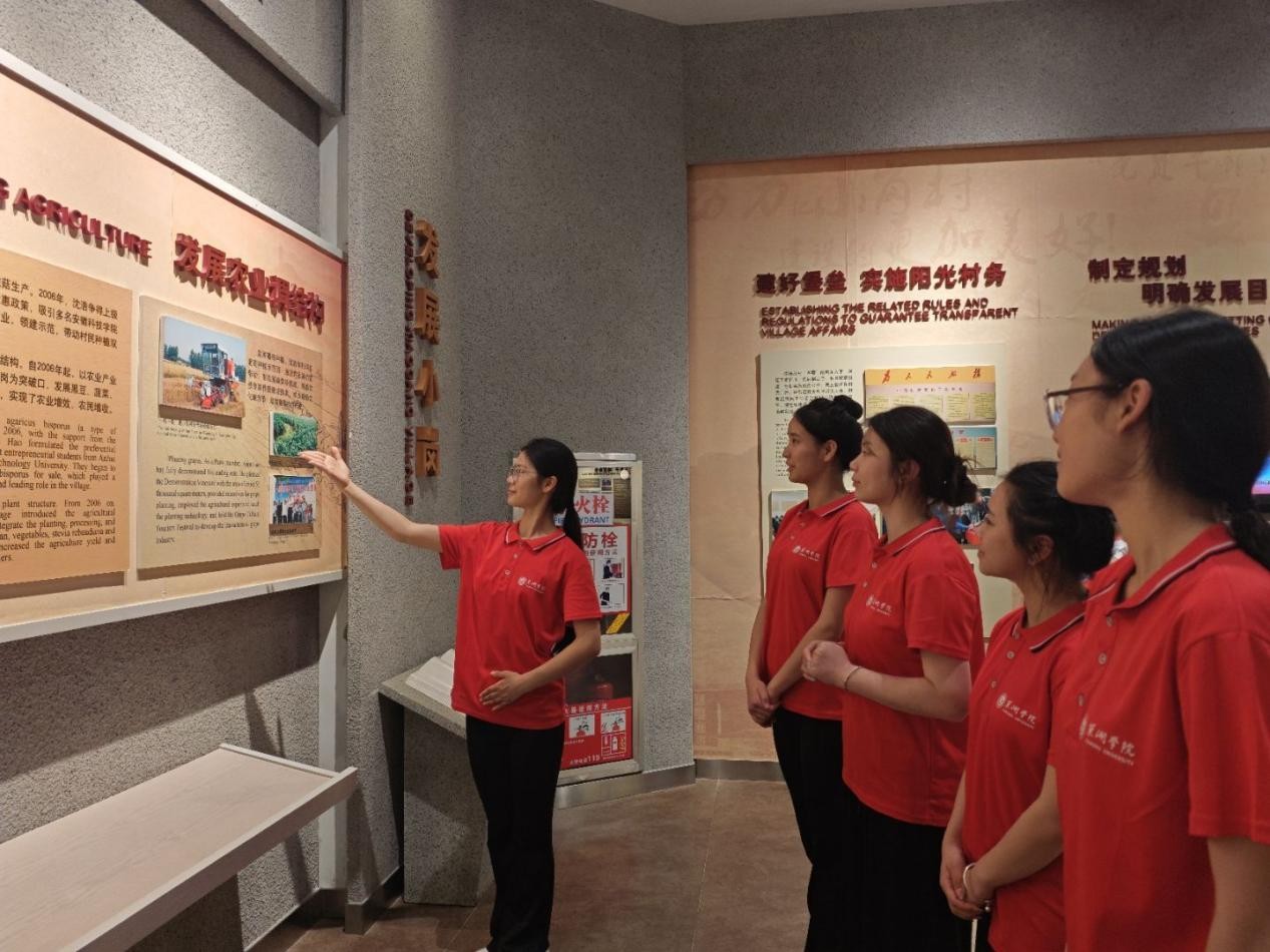 踏入陳列館,實踐隊員們在一件件實物、一幅幅照片中,回溯沈浩從“好孩子、好學生”成長為“好干部、好黨員”的人生軌跡。通過“融入小崗、謀劃小崗、發(fā)展小崗、奉獻小崗、情系小崗、永留小崗”六個篇章的鮮活事跡,隊員們看到了他扎根基層六年的堅守:田間地頭有他調(diào)研的腳印,困難黨員家中有他走訪的身影,婦女干部培訓會上有他動員的聲音。從帶領村民修路筑橋,到發(fā)展特色產(chǎn)業(yè),沈浩用實干贏得了群眾真心擁護。