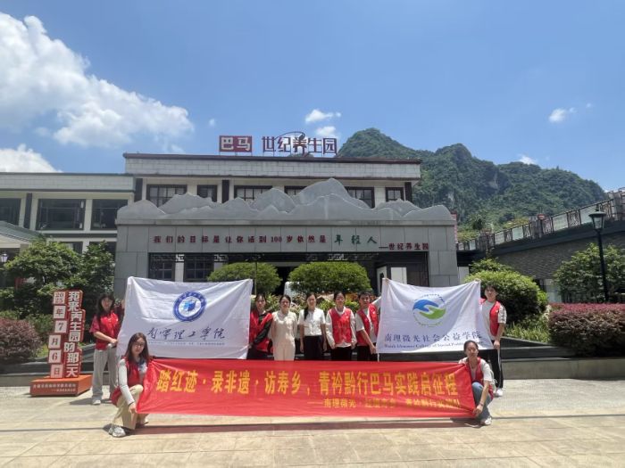 7月6日,南寧理工學院“紅壤壽鄉·青衿黔行”實踐隊深入廣西巴馬瑤族自治縣,聚焦旅居養生與大健康旅游產業發展現狀開展實地調研。實踐隊通過走訪百魔洞、世紀養生園、賜福湖國家旅游度假區等點位,系統考察當地特色產業的運營模式與發展潛力。