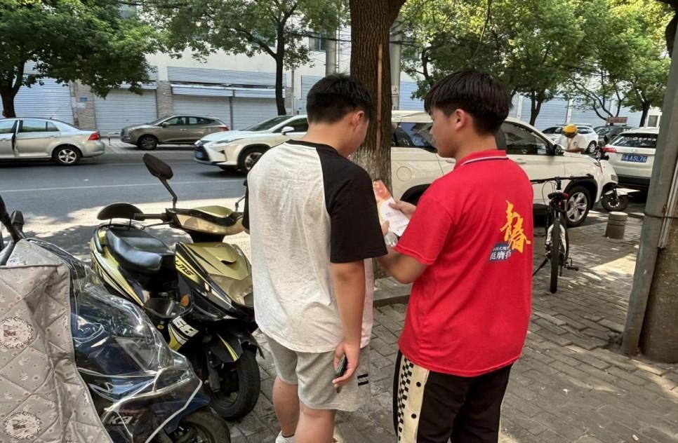 圖為巢湖學院"獻血賦能·健康調研”宣傳團在鳳凰山街道草城街社區周邊街道為附近居民科普獻血衛生小知識并發放獻血宣傳手冊。王詩穎攝