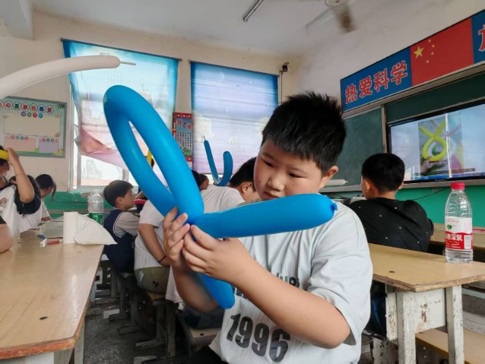 在手工課上,常芳瑜老師帶著一袋彩色長氣球走進教室,立即吸引了所有學生的目光。孩子們興奮地圍上前,眼中閃爍著期待的光芒。剛開始嘗試時,不少學生手忙腳亂——氣球不是扭歪了就是突然泄氣,教室里不時響起氣球爆破的聲響和善意的笑聲。在常老師手把手的指導下,學生們漸漸掌握了扭轉技巧,從最初只能簡單對折,到后來能嫻熟地制作板凳狗、蝴蝶結等造型。當一個個栩栩如生的氣球作品在手中誕生時,孩子們互相展示、比較,臉上洋溢著自豪的笑容。整堂課充滿歡聲笑語,學生們在玩樂中收獲了創(chuàng)造的快樂。