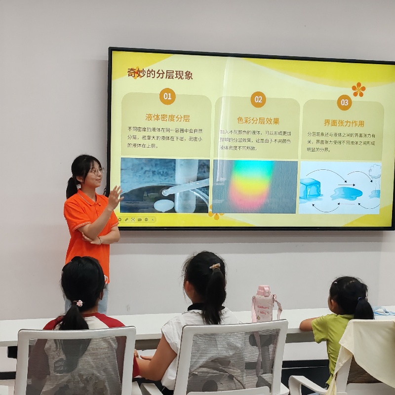 當“彩虹雨”在杯中傾瀉而下,當自制的泡泡折射出七彩光芒,孩子們陣陣驚嘆與好奇的提問,讓夏日的社區(qū)服務(wù)中心充滿了科學(xué)的趣味與求知的熱情。2025年7月2日,安徽師范大學(xué)化學(xué)與材料科學(xué)學(xué)院“研析民生,科潤皖江”暑期社會實踐團隊走進蕪湖市南陵縣和順社區(qū),將嚴謹?shù)目茖W(xué)知識與實用的安全常識,化作一場場生動有趣的互動體驗,為社區(qū)兒童奉上了一份特別的暑期“科普大餐”。