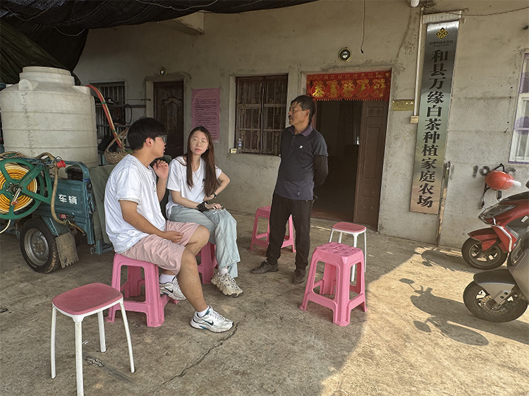 特色種植與業態融合:鄉村價值的多元綻放 7月14日,實踐團走進萬元村白茶基地。沿坡地分布的茶園中,太陽能殺蟲燈與自然灌溉系統構成綠色種植體系。茶廠負責人展示,白茶經多道工序加工后,通過線上線下渠道銷往各地;基地套種的黃桃進入掛果期,預計采摘期持續至8月中旬,供應周邊城市市場,實現“一地多收”。