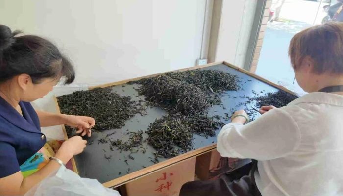 吳美香女士還向團隊展示了店里員工們進行茶葉粗檢的過程,員工們憑借豐富的經驗,仔細挑選出不符合標準的茶葉,以保證出售茶葉的品質。