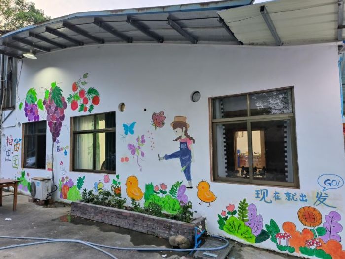 隨后,突擊隊(duì)隊(duì)員們積極投身于莊園墻繪創(chuàng)作工作。從構(gòu)思畫面到調(diào)色上色,他們分工合作,有的負(fù)責(zé)描繪,有的負(fù)責(zé)調(diào)色,有的負(fù)責(zé)上色,默契配合,充分發(fā)揮各自的特長,將農(nóng)莊的美麗風(fēng)景、當(dāng)?shù)氐奶厣r(nóng)作物以及充滿卡通趣味的元素巧妙地融入到墻繪中,讓昔日“冷冰冰”的墻面瞬間充滿了生機(jī)與活力。