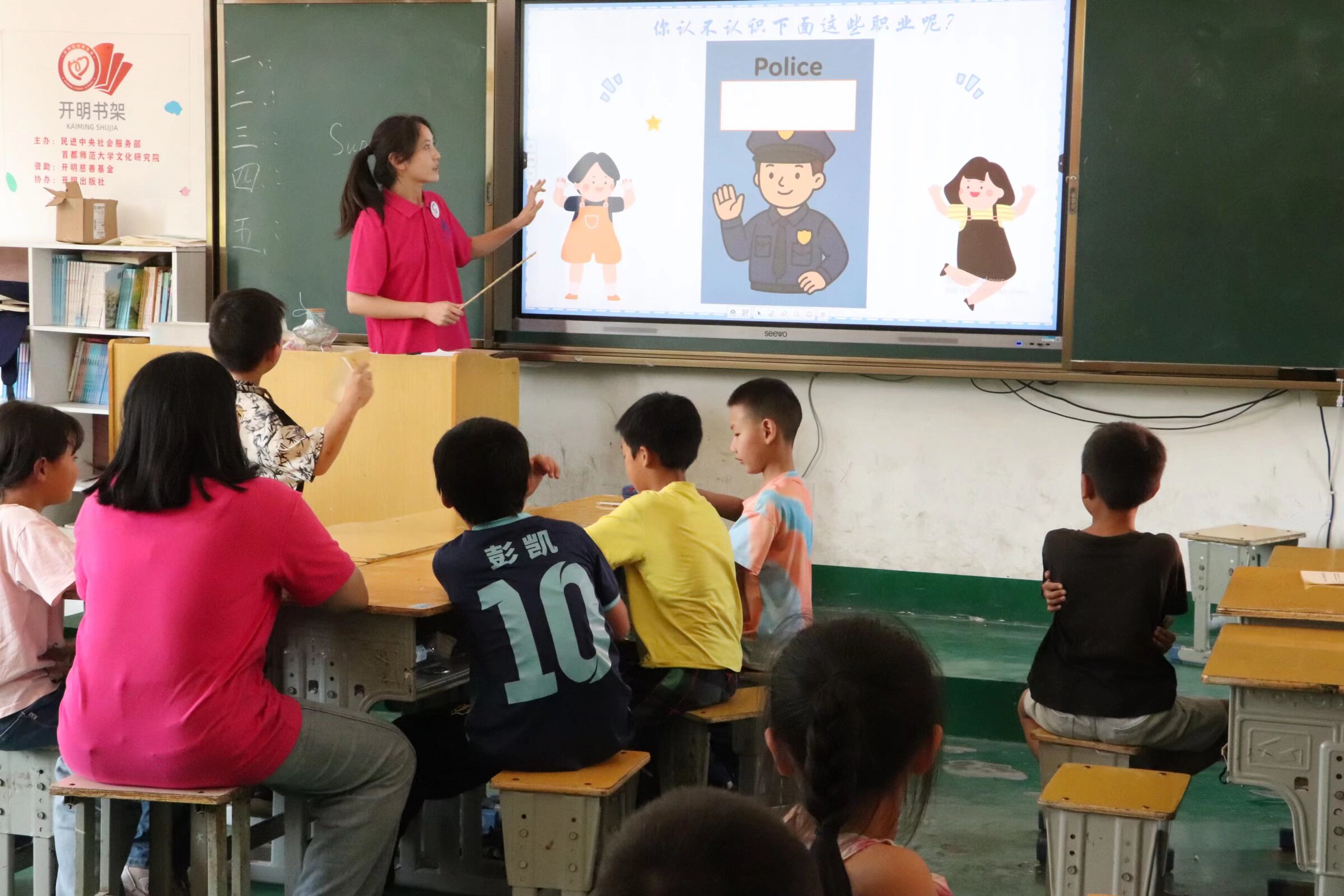 以“My Dream”為主題的英語課為孩子們插上夢想的翅膀。在隊員們耐心引導和鼓勵下,孩子們勇敢地用英語表達自己的理想——“警察”、“老師”……聲音雖稚嫩卻充滿力量。課堂不僅鍛煉了英語口語能力,更在孩子們心中播下了遠大理想的種子,讓他們深刻感受到用英語溝通、描繪未來的樂趣與成就感。